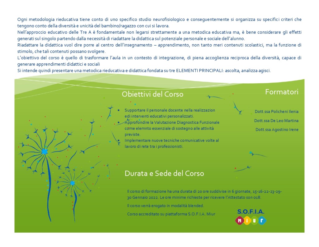 -Educazione psicomotoria e cognitivo-comportamentale;